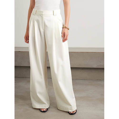 Жешки тагови: Комплет блејзер без ракави Панталони со широки нозе дводелна облека Крем блејзер елек комплет Женски скроен дводелен
