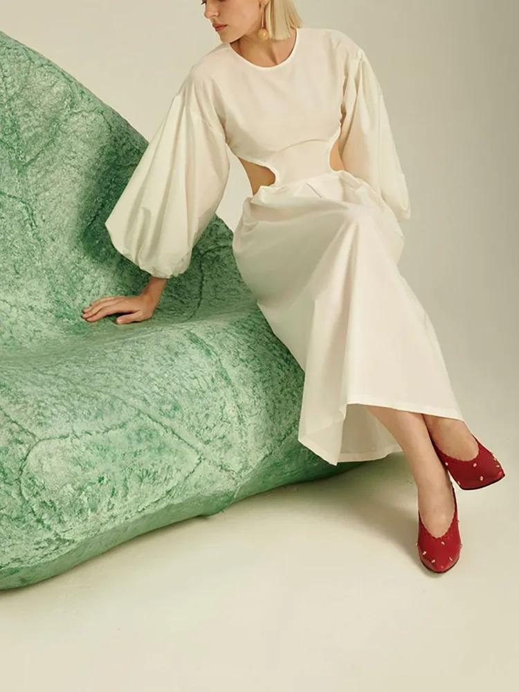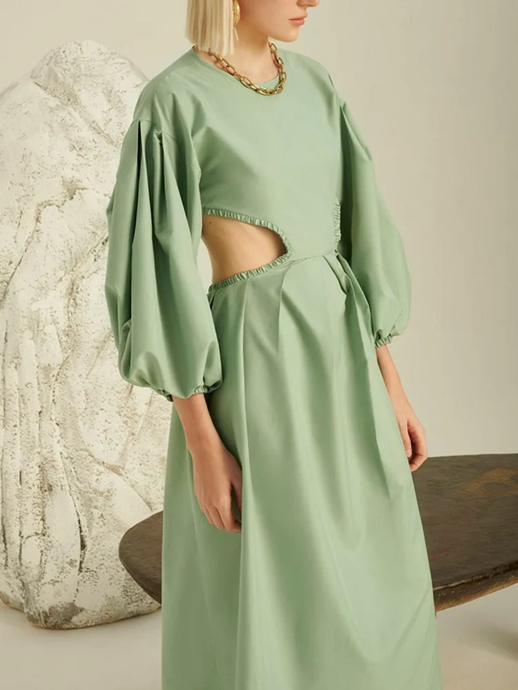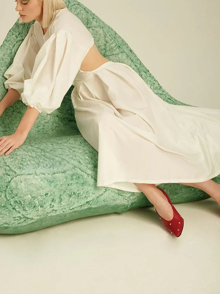 Модни карактеристики на елегантен ленен фустан со долги ракави