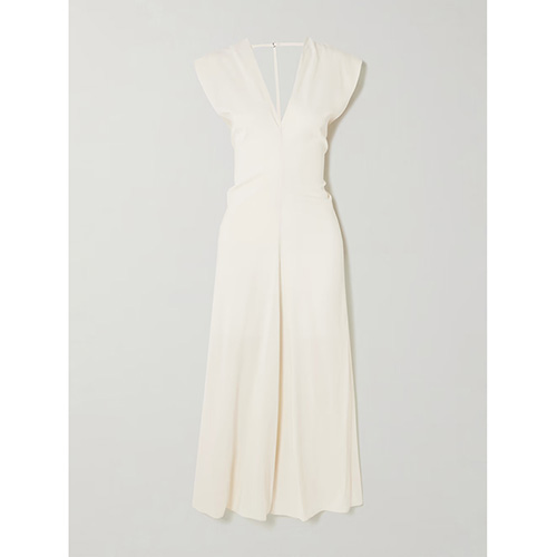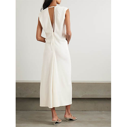 • Скроен фустан од слонова коска без ракави длабоко V мидиСкроен фустан од слонова коска без ракави длабоко V миди